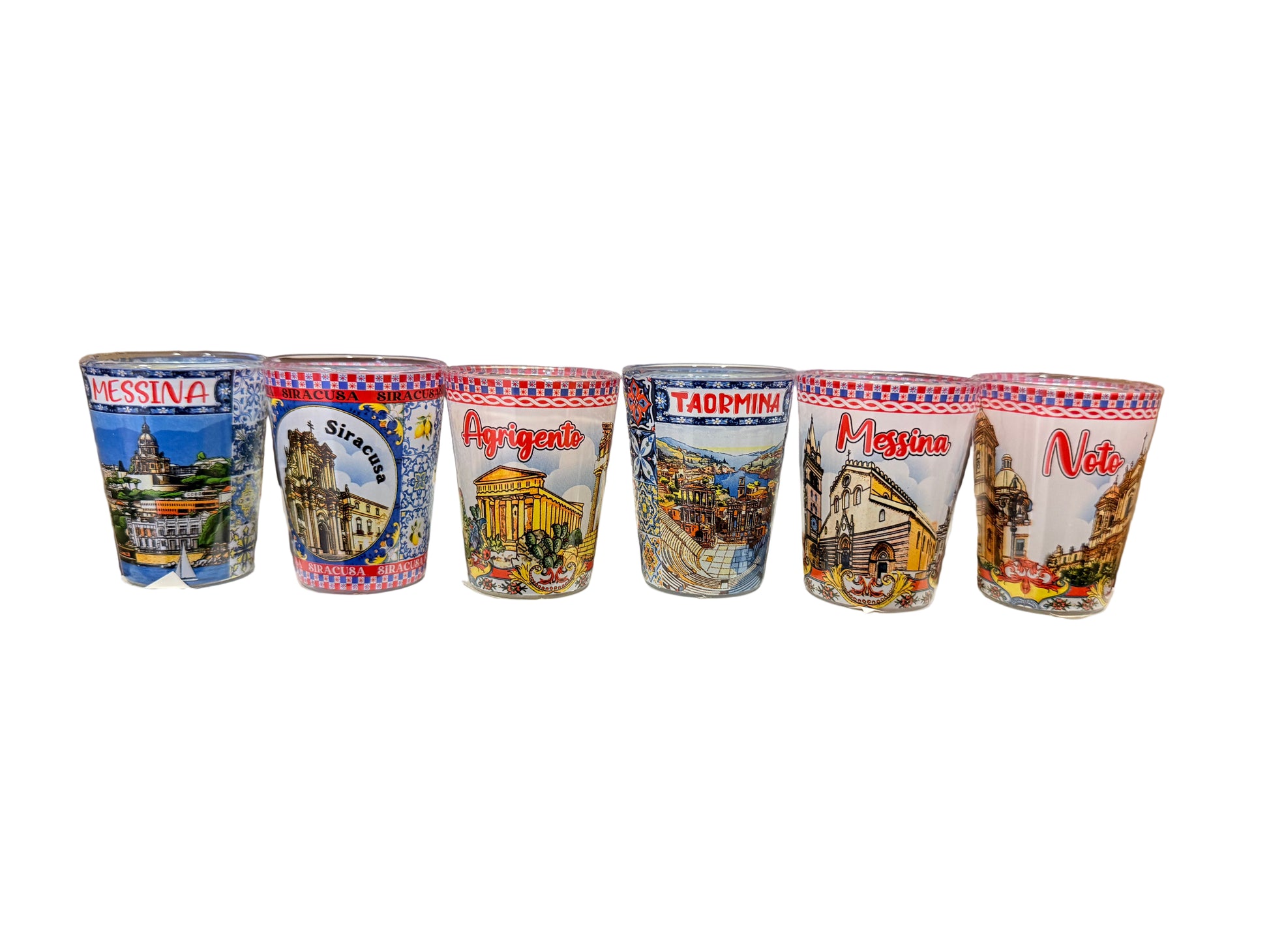 Aporta un toque de sol y tradición italiana a tus aperitivos con estos hermosos vasitos de shot “Ciudades Sicilianas”.